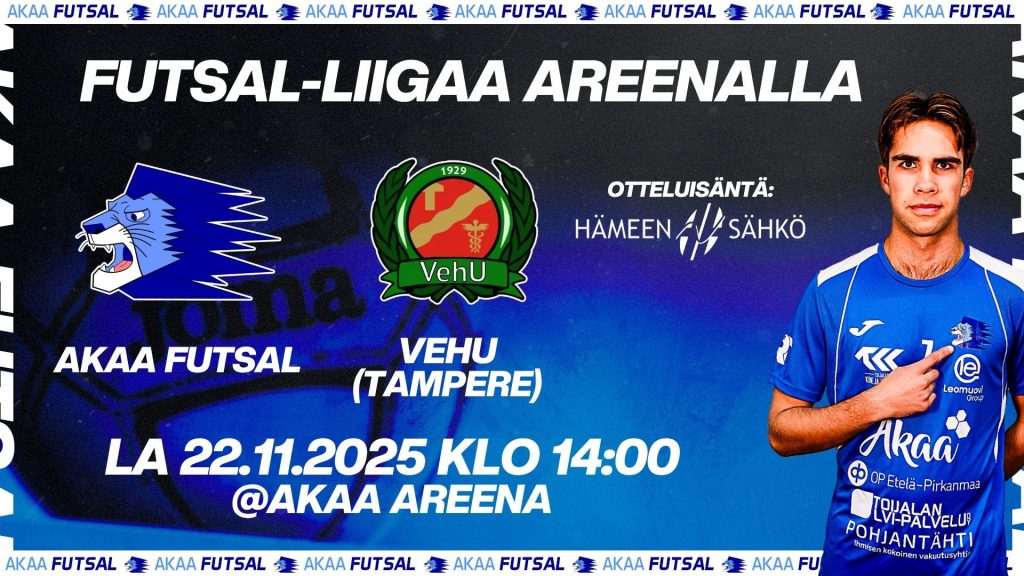 Akaa Futsal palaa pitkästä aikaa kotihalliinsa Akaa Areenalle ensi lauantaina. Vieraaksi silloin saapuu erittäin vahvasti kauden aloittanut Vehmaisten Urheilijat Tampereelta. Jännittävä Pirkanmaan paikallisottelu käynnistyy lauantaina klo 14.
